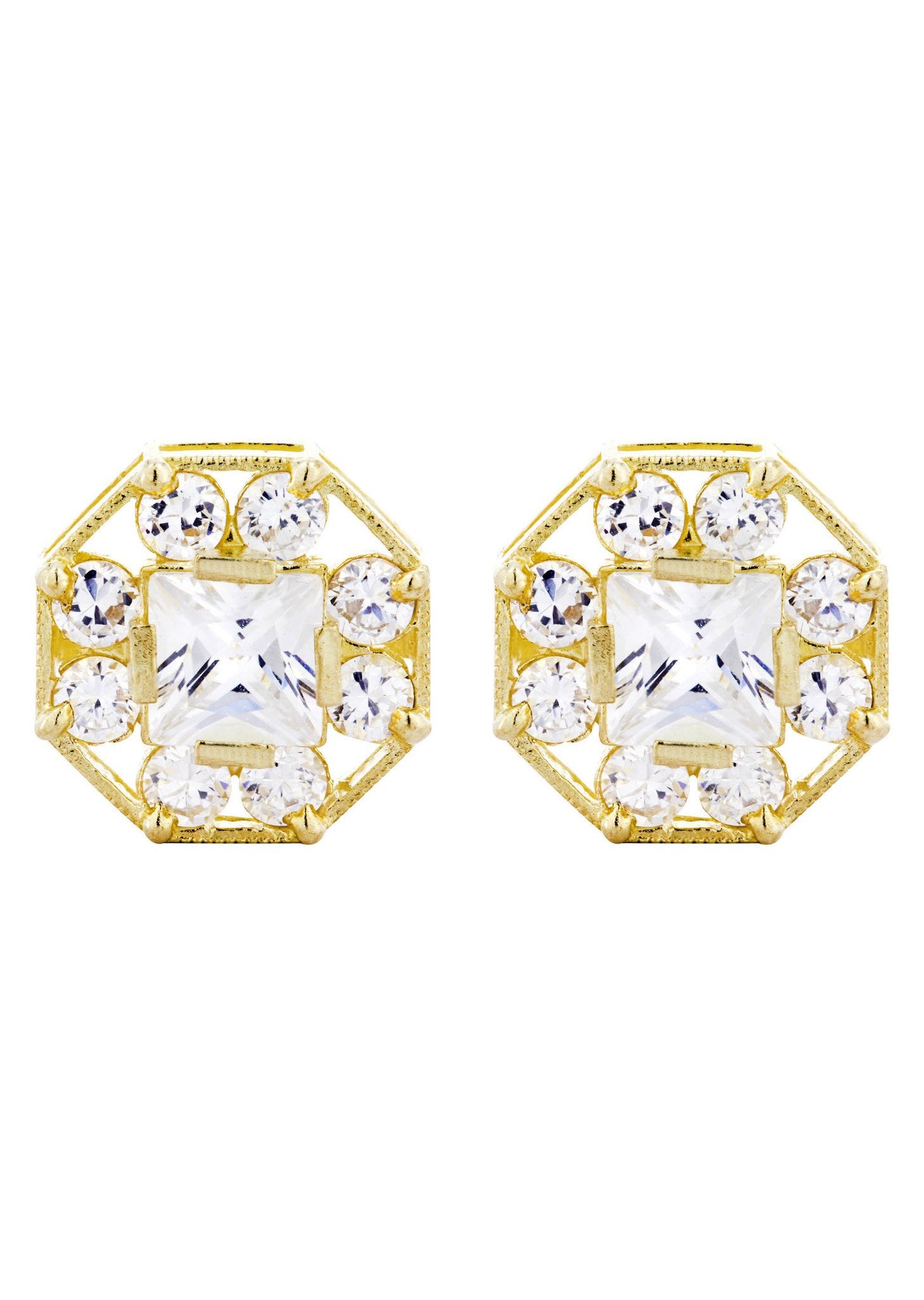 Cz 10K Yellow Gold Studs Appx. Diameter 0.5 Inches