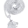 10k White Gold Lion Head Diamond Pendant & Cuban Chain which comes in 2 Inches in length and 1.25 Inches in width. The pendant has 0.79 Carats of Vs quality diamonds. The chain options include a 10k gold cuban chain, franco or rope with a width of 3mm’s and the length can be selected to any preference.