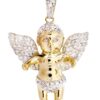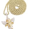 10 Yellow Gold Angel Diamond Pendant & Rope Chain which comes in 1.4 Inches in length and 1 Inches in width. The pendant has 0.96 Carats of Vs quality diamonds. The chain options include a 10k gold cuban chain, franco or rope with a width of 3mm’s and the length can be selected to any preference. -100% REAL GOLD