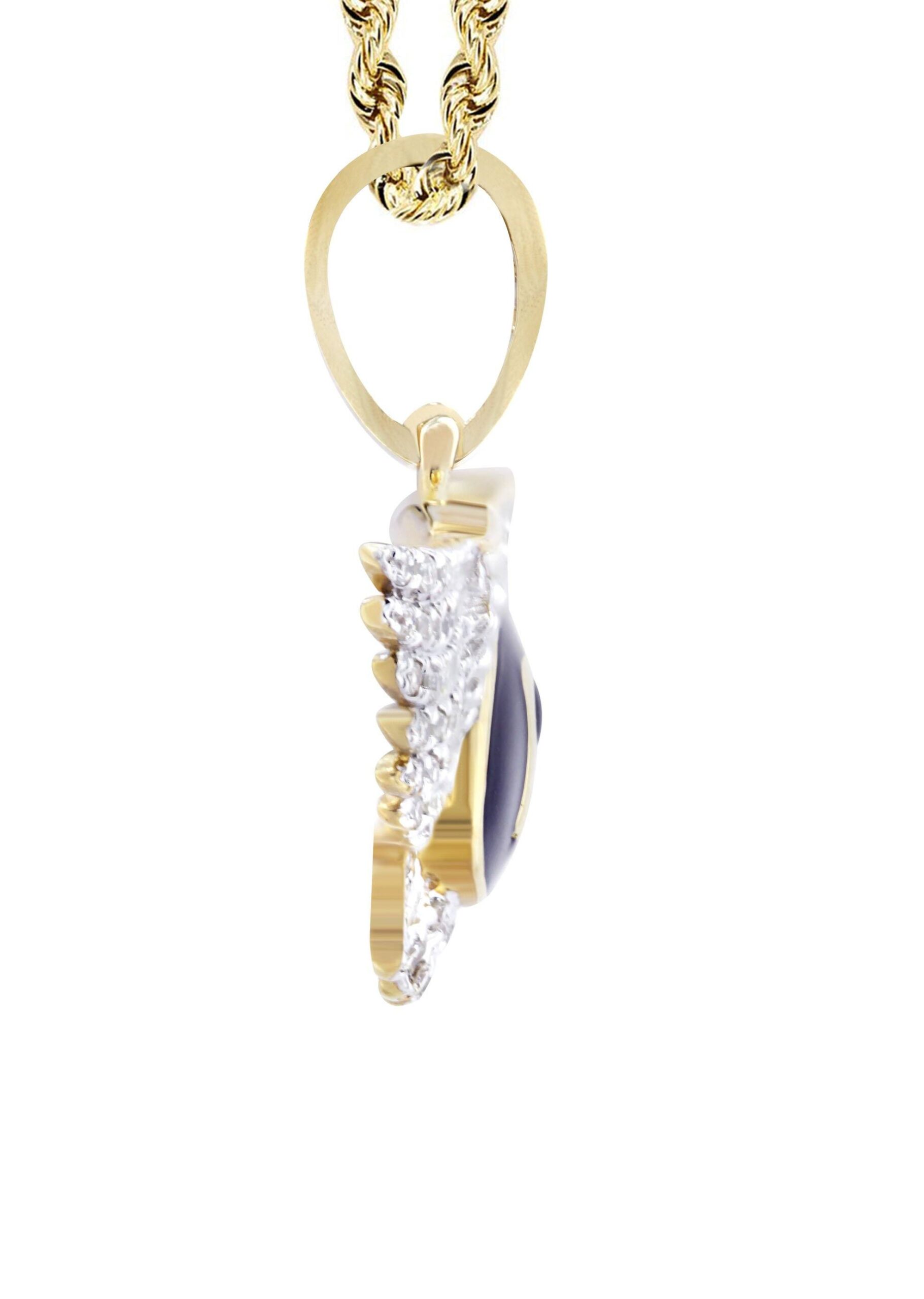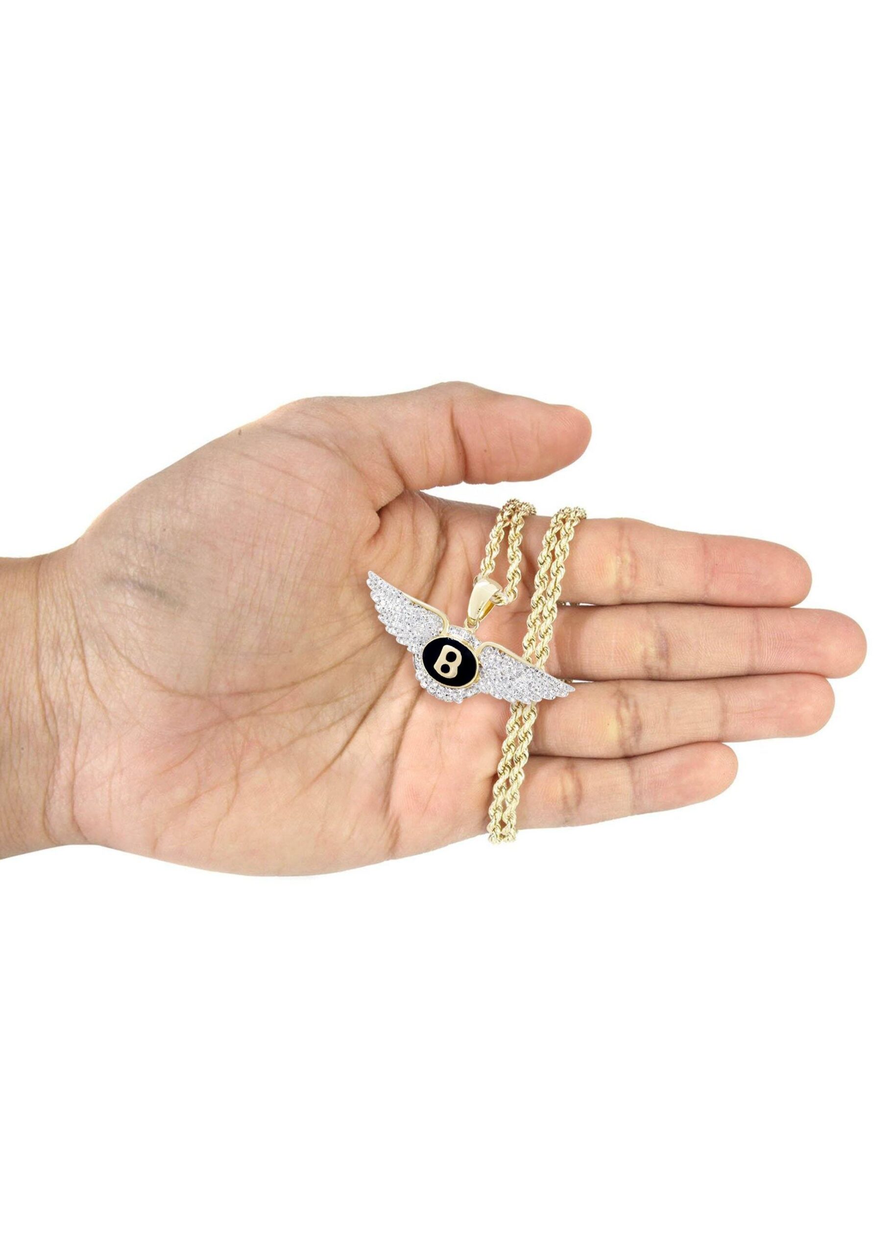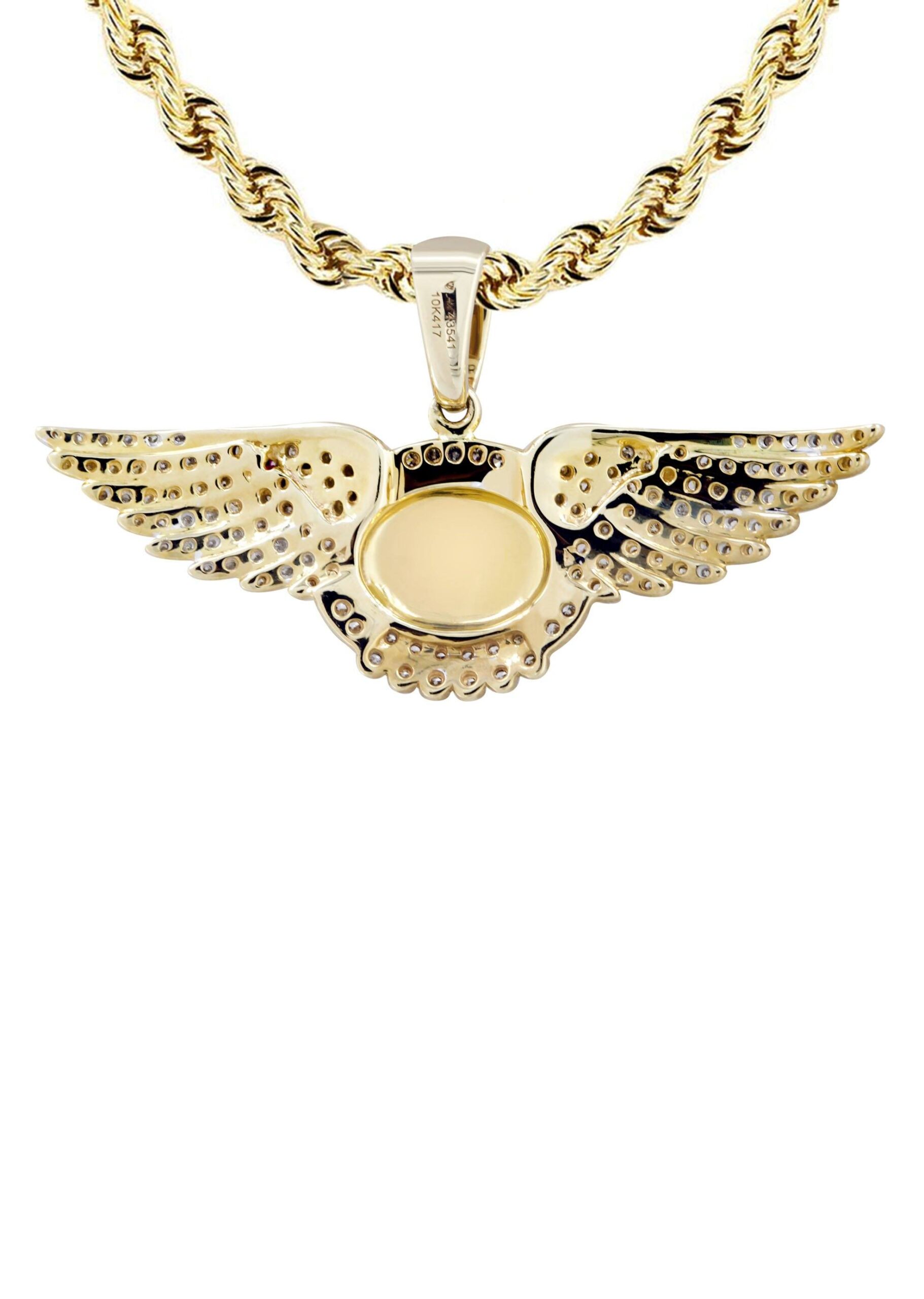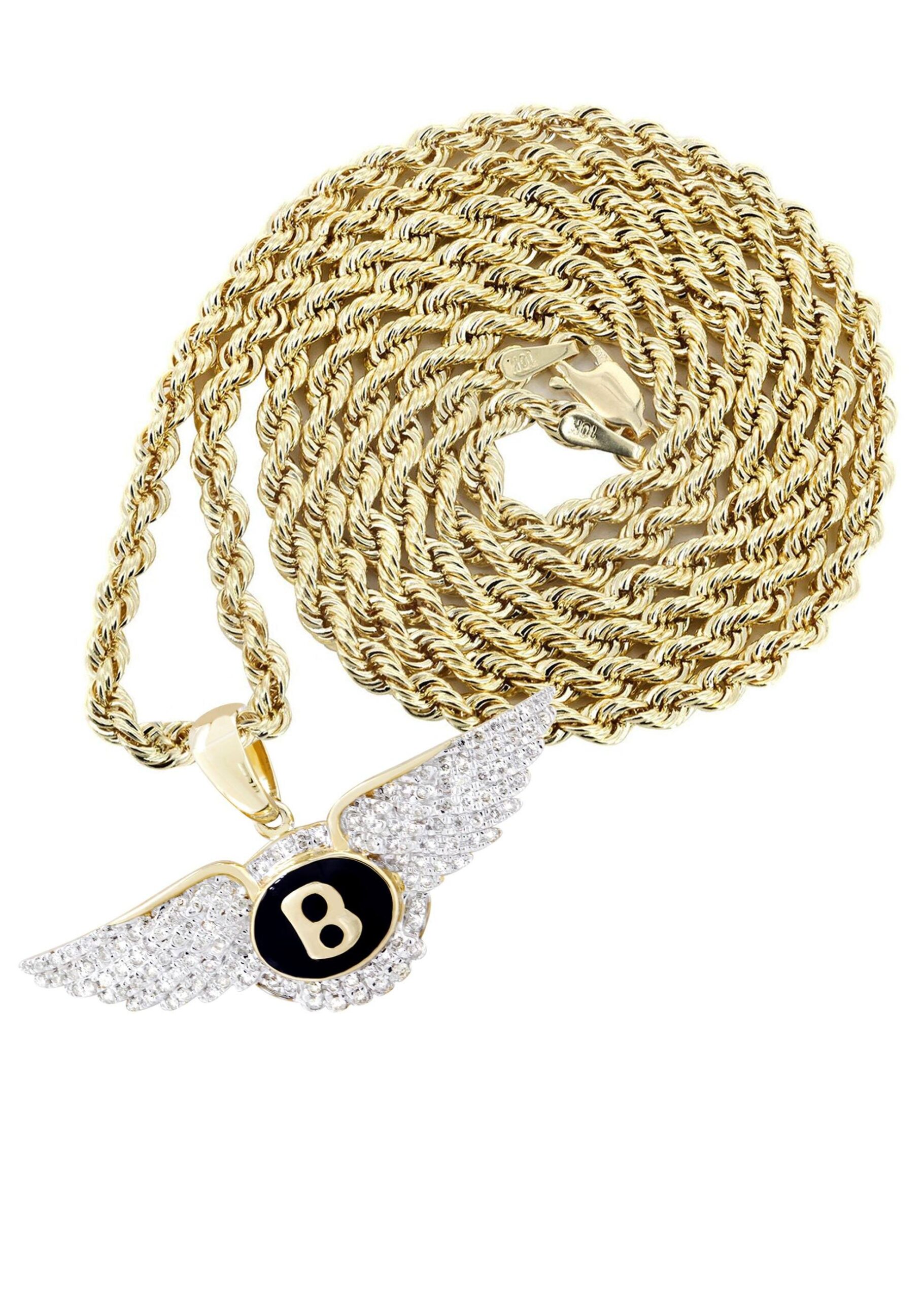 10K Yellow Gold Bentley Pendant & Rope Chain With Approximately 0.54 Carats Of Diamonds. The Pendant Width Is 1.3 Inches And The Length Is 2.25 Inches. The Chain Options Include A 10k Gold Cuban Chain, Franco Or Rope With A Width Of 3mm’s And The Length Can Be Selected To Any Preference.