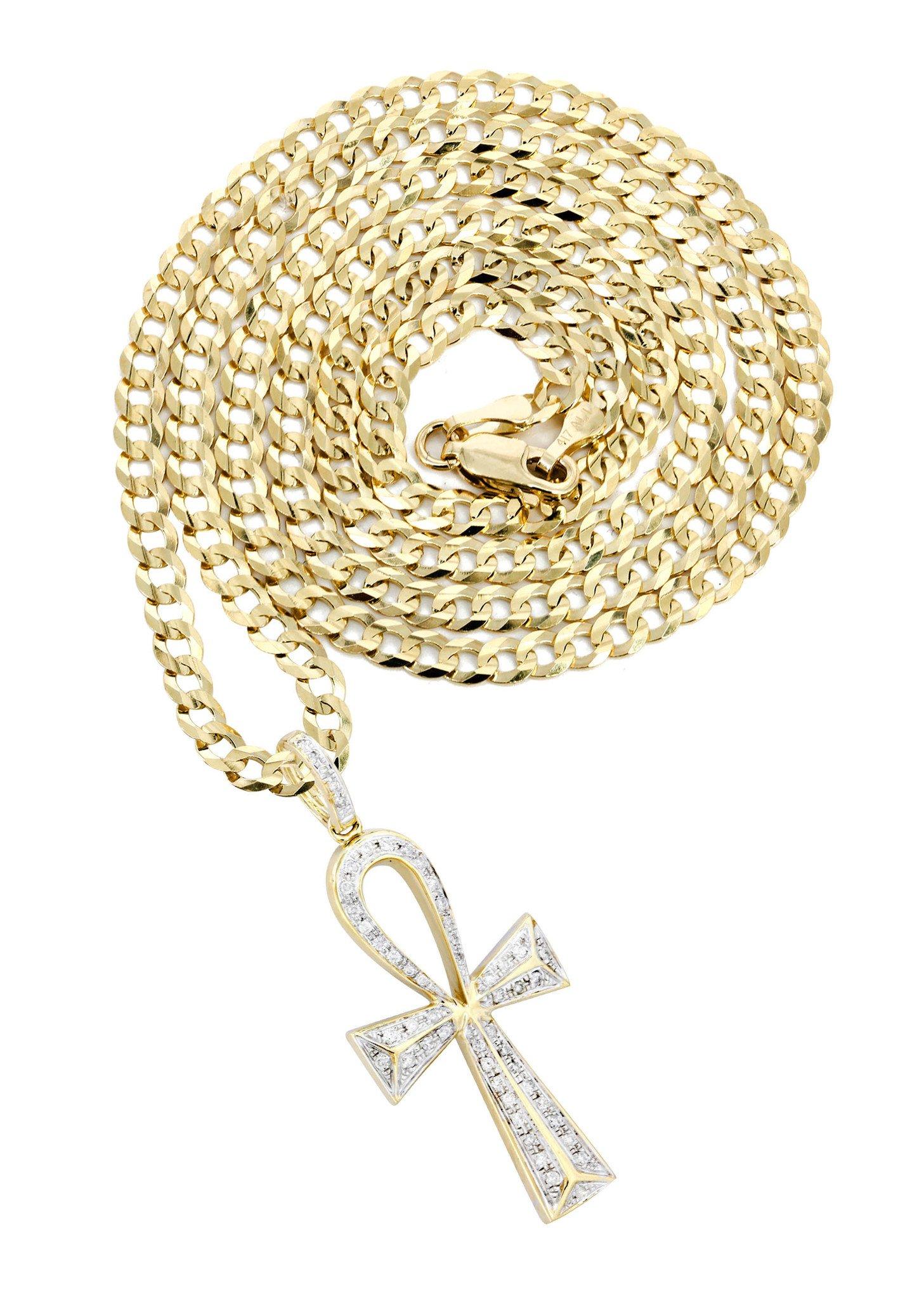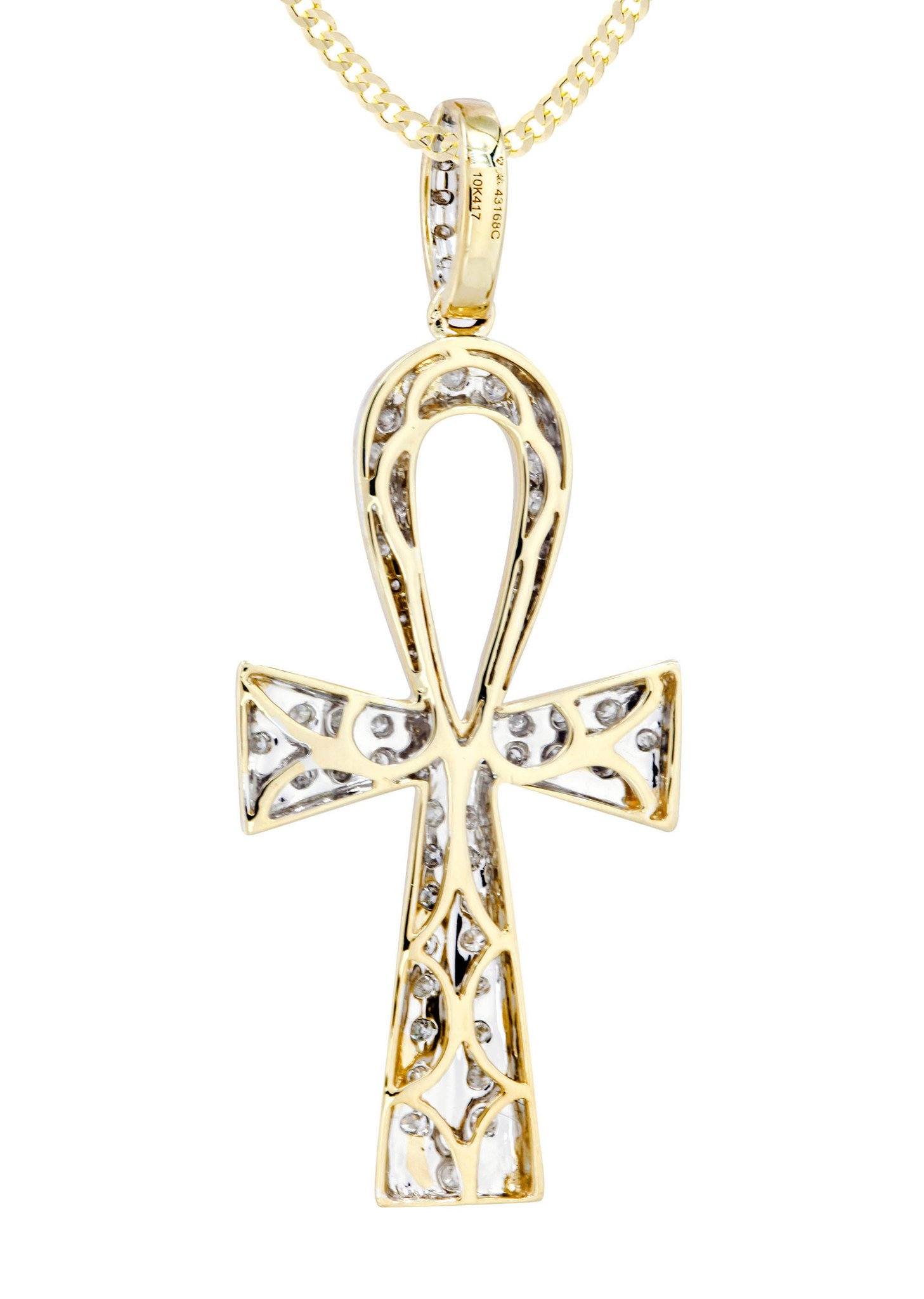 10k Yellow Gold Ankh Diamond Pendant & Cuban Chain which comes in 2 Inches in length and 0.8 Inches in width. The pendant has 0.45 Carats of Vs quality diamonds. The chain options include a 10k gold cuban chain, franco or rope with a width of 3mm’s and the length can be selected to any preference. -100% REAL GOLD