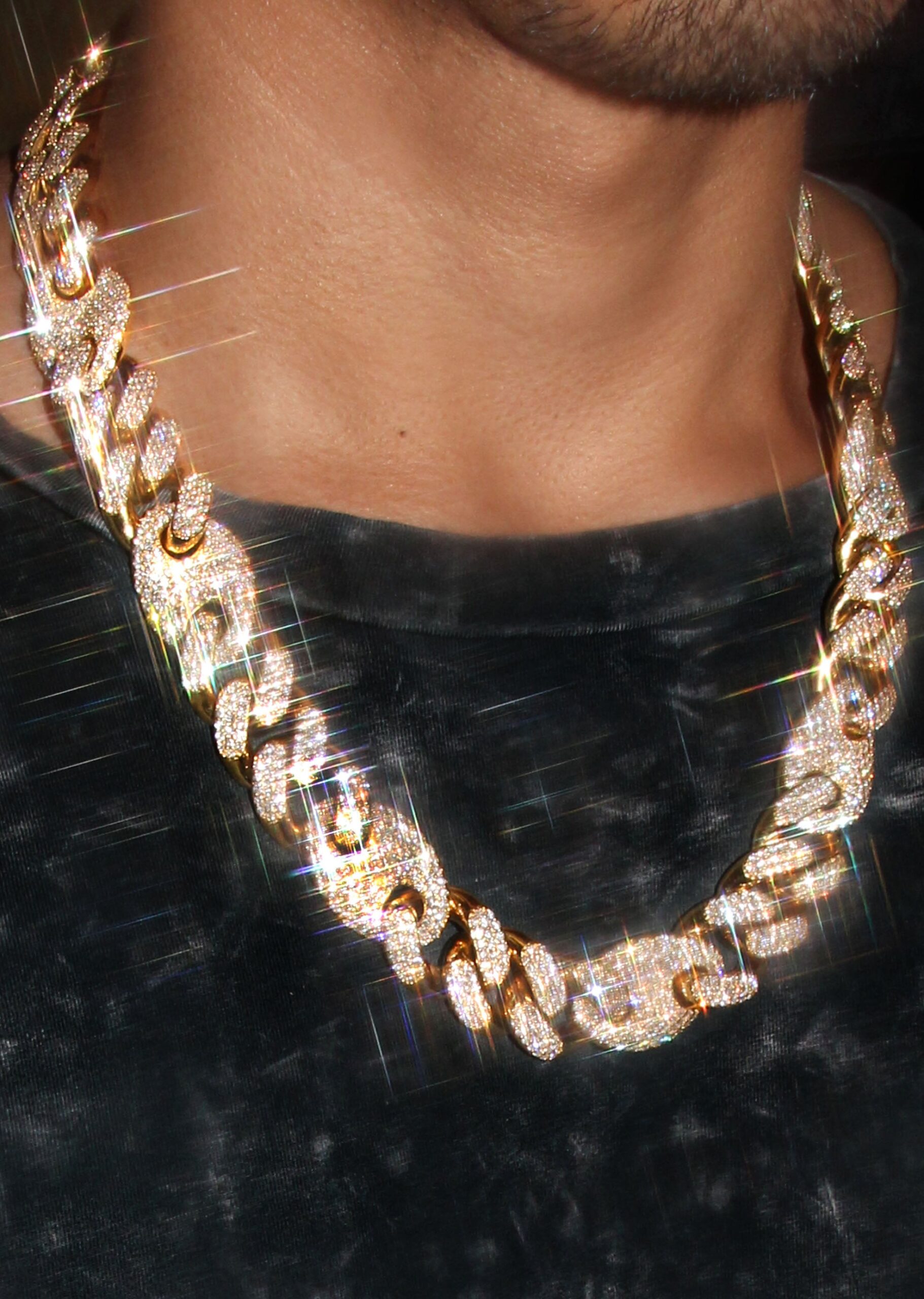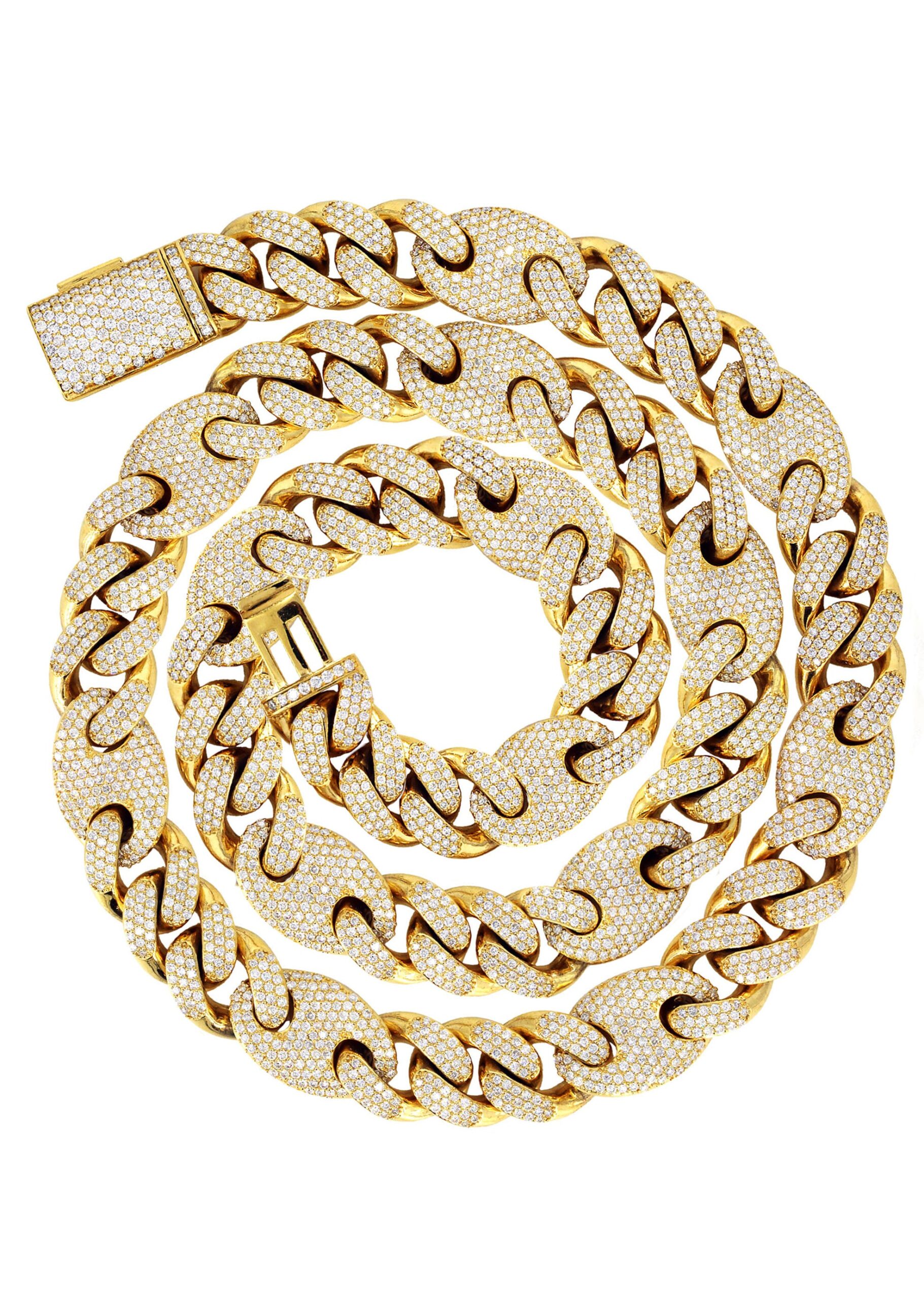 14K Yellow Gold Diamond Gucci Puff Cuban Chain & Bracelet 18 Mm Width Bundle. Customize your look and pick your setup on the fly. Choose your chain length along with the bracelet length. Once you selected your length, you can see the adjusted gram weight above the price. The quality of the diamonds are VS Clarity and G/H Color.