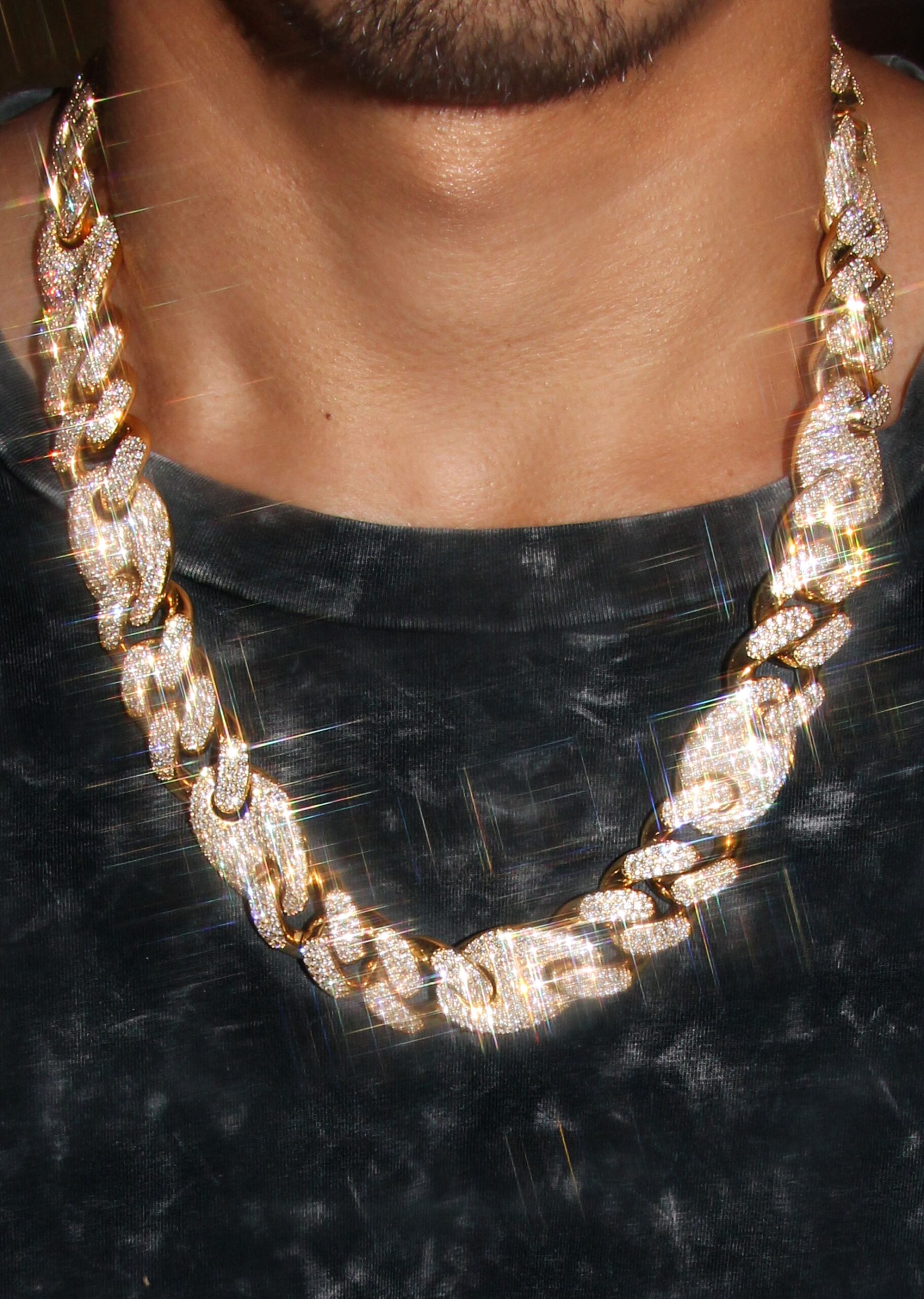 14K Iced Out Diamond Gucci Puff Cuban Link Chain 18 Mm width. You can pick the length of your chain above. Once you selected your length, you can see the adjusted gram weight above the price. The quality of the diamonds are VS Clarity and G/H Color.