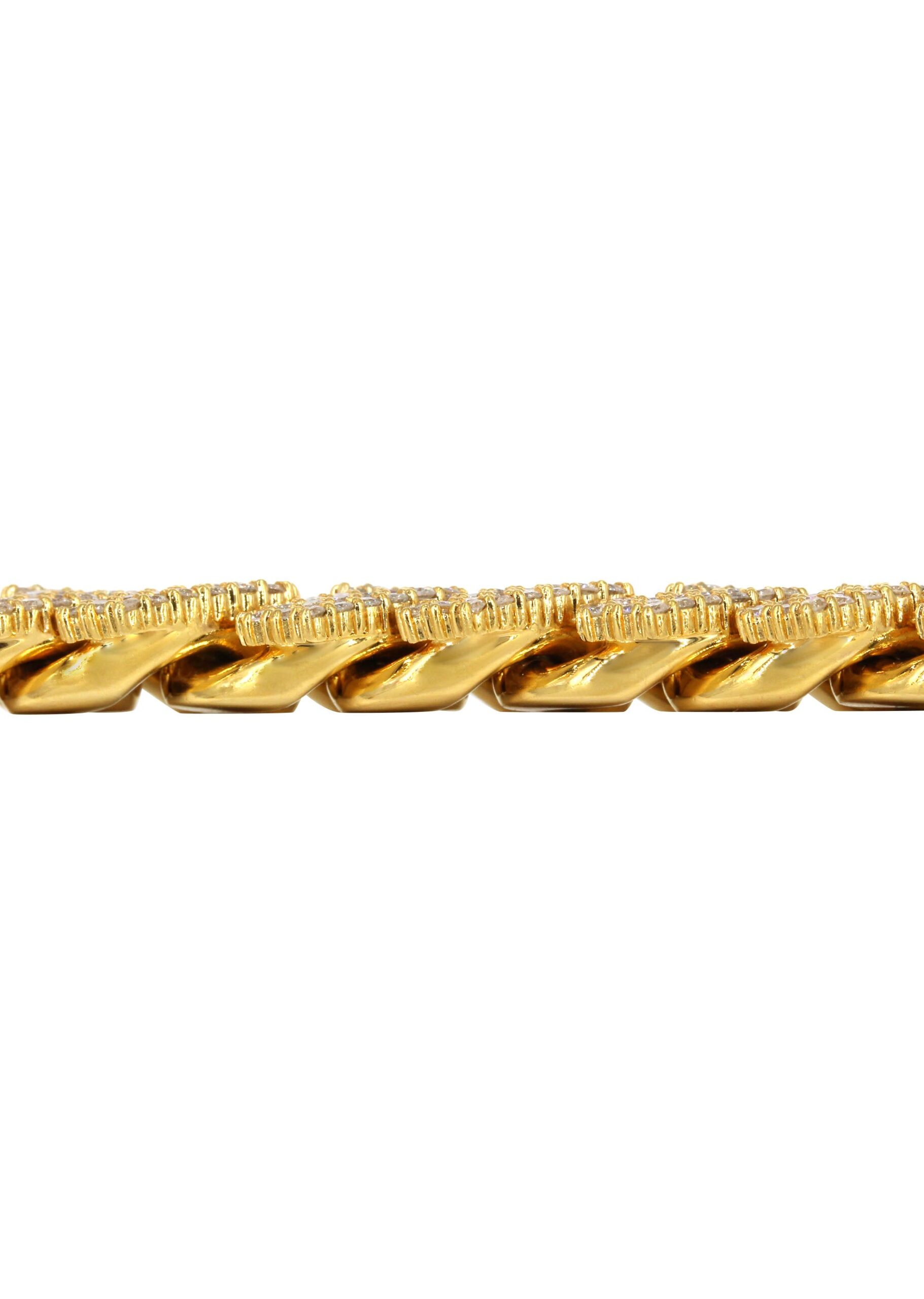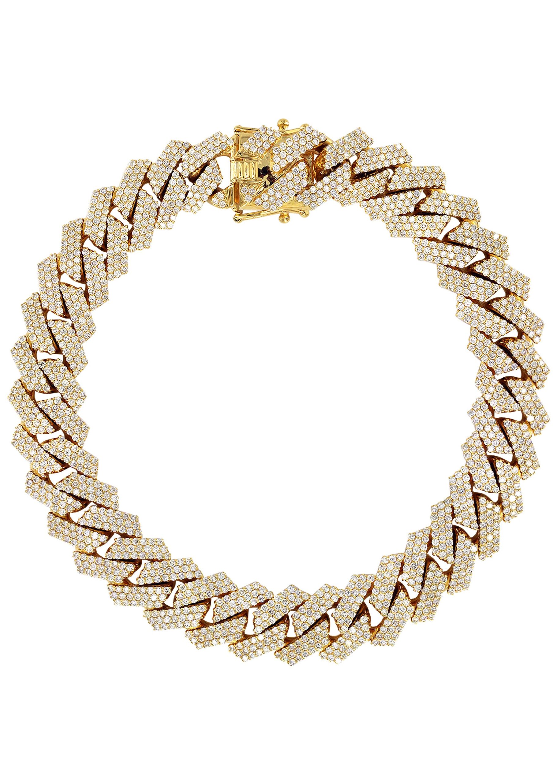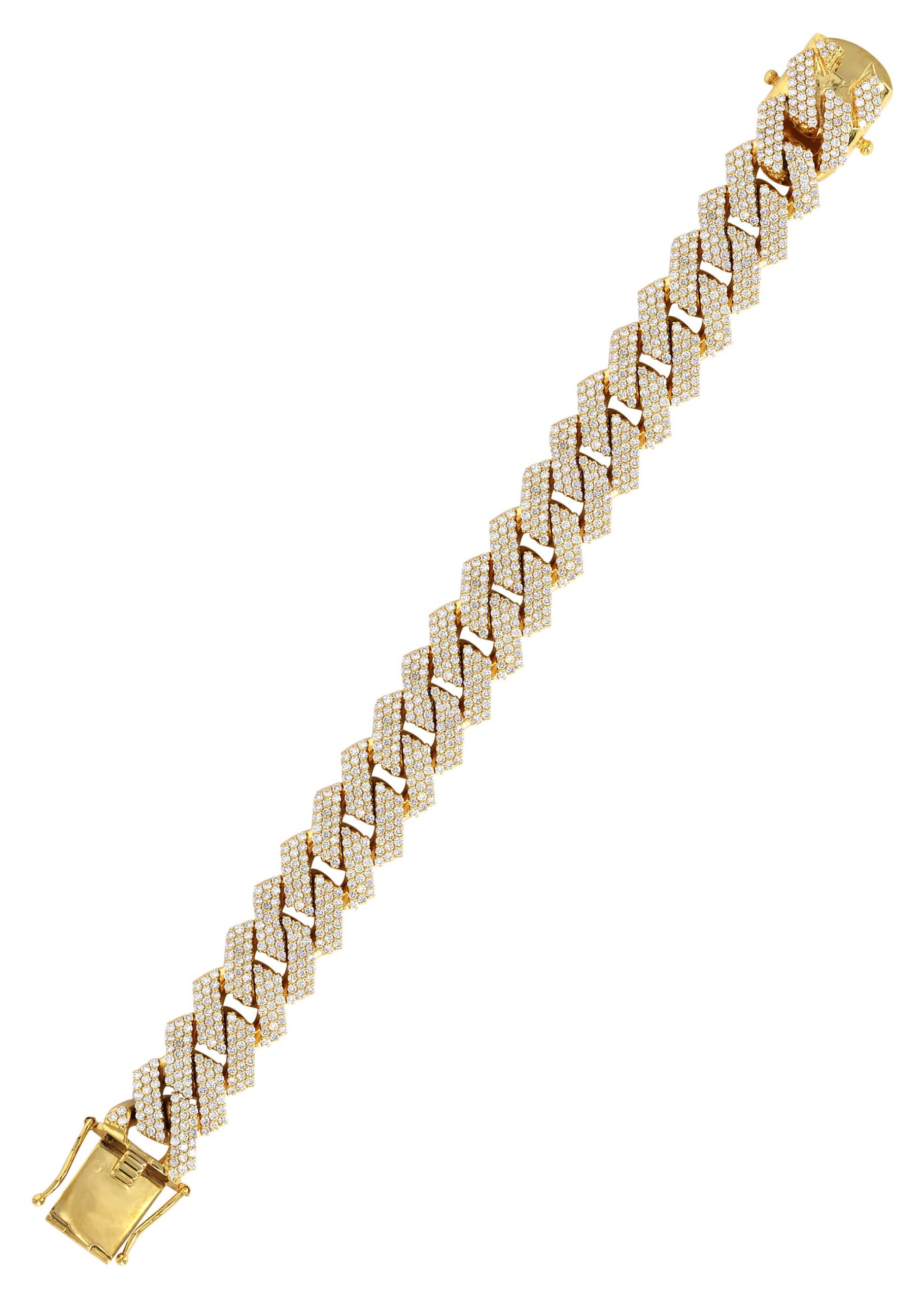 14K Yellow Gold Diamond Miami Cuban Link Prong Bracelet 17 Mm. Select the length above and the diamond carat weight along with the gram weight will adjust. This bracelet comes with VS clarity and F/G color quality diamonds