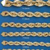 Hollow Yellow Rope Chain | 10K Yellow Gold. These chains are fully customizable, so you can pick your length and width above. Once you selected your length and width, you can see the adjusted gram weight above the price.