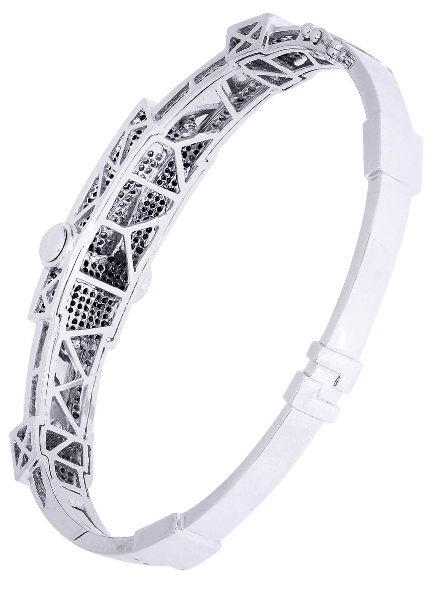 14K White Gold Mens Diamond Bangle With Approximately 1.7 Carats Of Diamonds And 30.67 Grams .This Hand Made Bracelet Comes In 8.5 Inches But Can Be Adjusted To Any Size Upon Request.