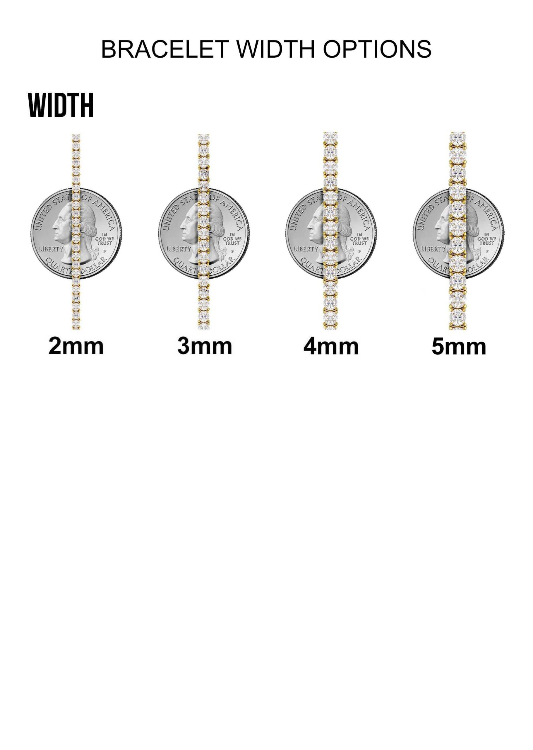 14K gold tennis bracelet which can be customized to any length and width. Select the length and width above and the diamond carat weight along with the gram weight will adjust. The tennis bracelet comes with VS clarity and F/G color quality diamonds