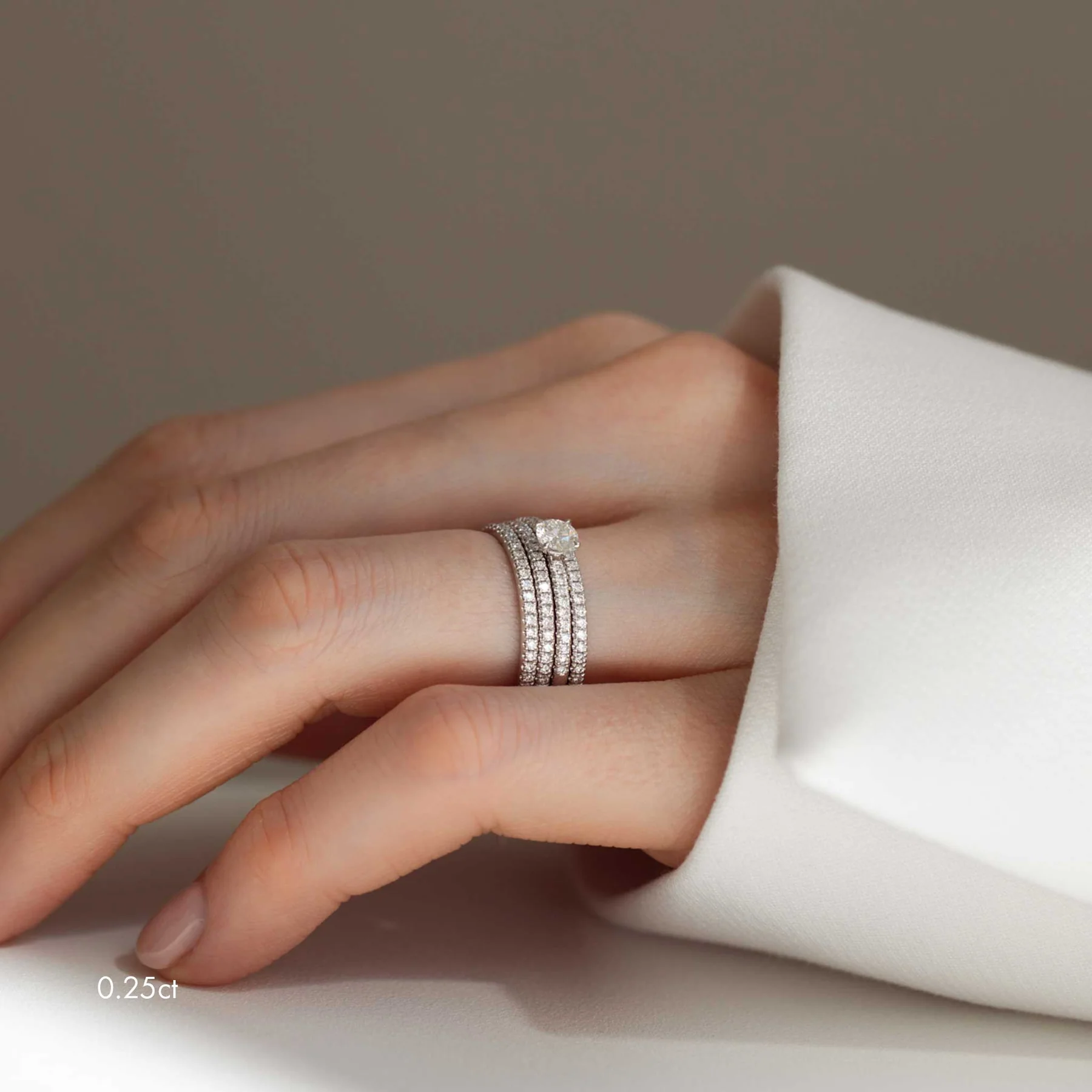 • Lab-grown diamonds: total 0.11ct, cut: brilliant, colour: F, clarity: VVS–VS